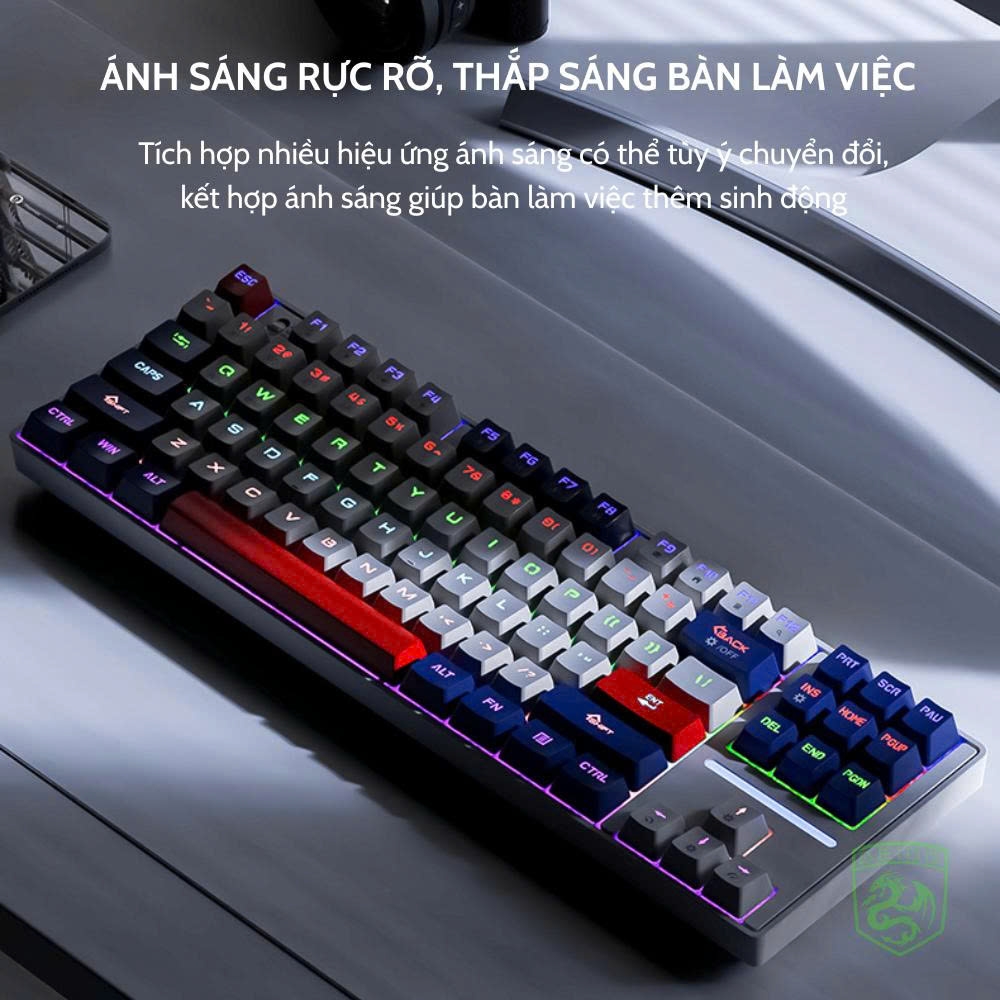 - Thiết Kế 87 Phím: Bố cục TKL (Tenkeyless) nhỏ gọn, tiết kiệm không gian làm việc.
