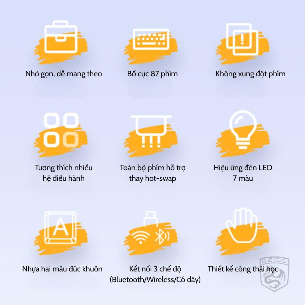 Bàn Phím Cơ DEIOG GK87 - Kết Nối 3 Chế Độ, 87 Phím