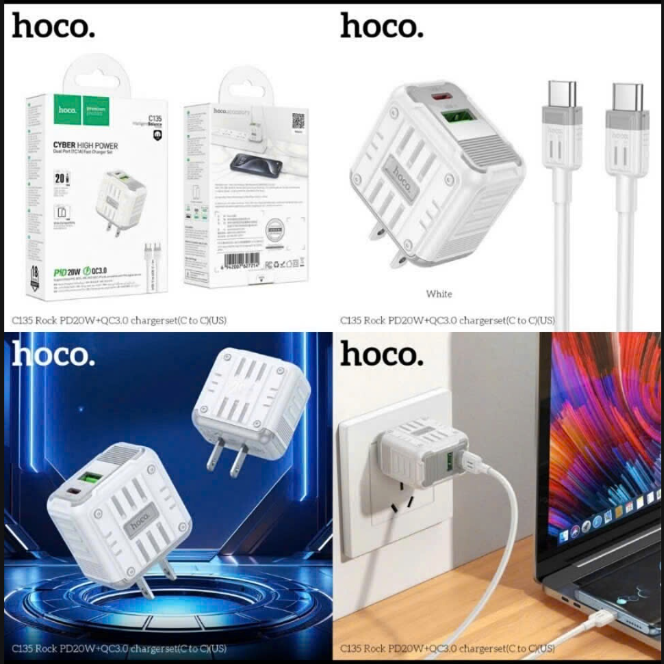 Bộ sạc HOCO C135 sạc nhanh 20w+Qc3.0 cóc 2 cổng 1U 1C kèm cáp 2 đầu Type C chính hãng