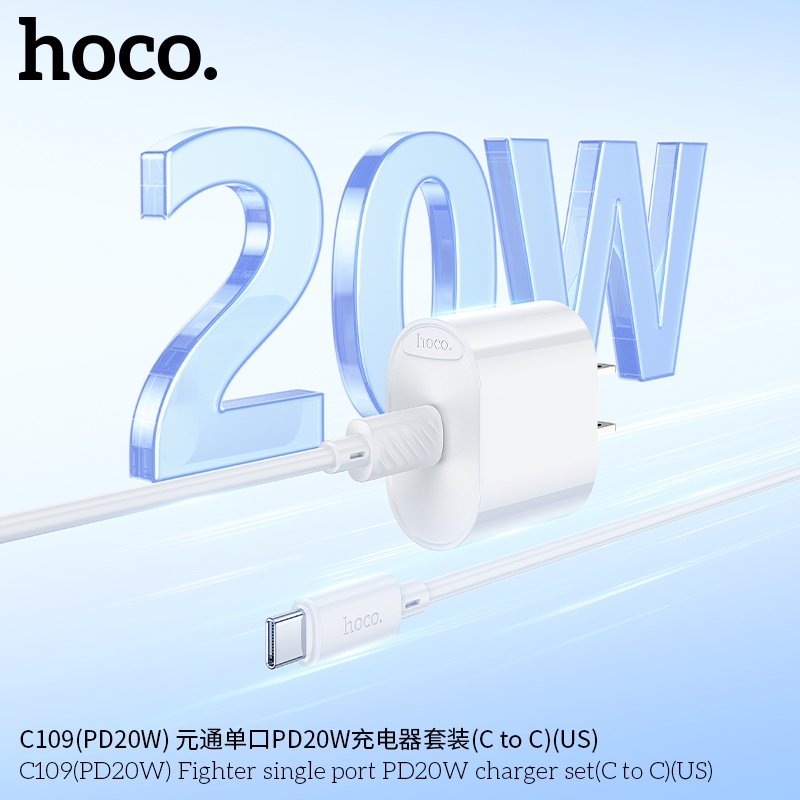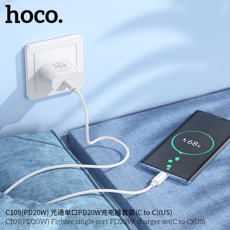 Bộ sạc nhanh PD20W HOCO C109A US 1 CỔNG (CÓC 1 CỔNG TYPE C; CÁP 2 ĐẦU TYPE C; C-C)