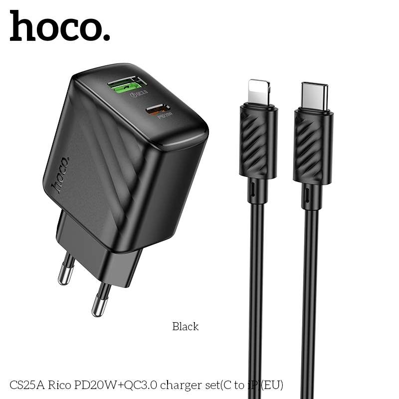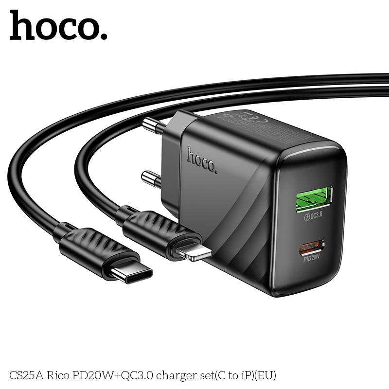Bộ sạc nhanh 20w HOCO CS83A (c-l) cóc 2 cổng (1 cổng usb 1 cổng Type C) kèm cáp Type C ra Iphone chính hãng