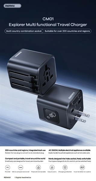 Bộ sạc ổ điện du lịch REMAX CM01 2500w đa năng chính hãng [BH 1 năm]