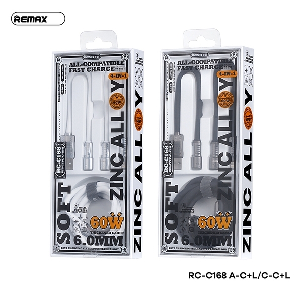 Cáp sạc đa năng REMAX RC-C168 cáp 4 trong 1 A-C+L/ C-C+L dài 1m5 chính hãng