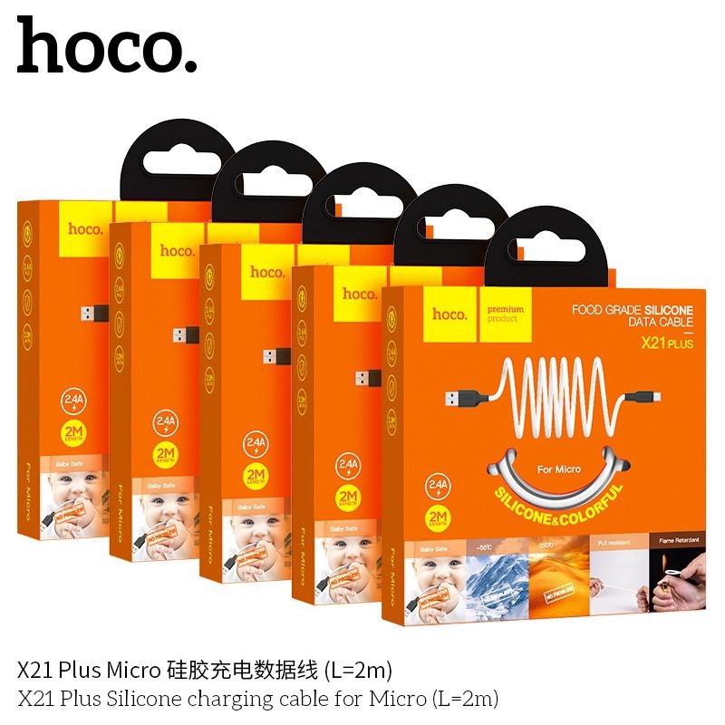 Cáp sạc nhanh 2.4A HOCO X21 Plus cáp silicone USB ra MICRO dài 2M chính hãng