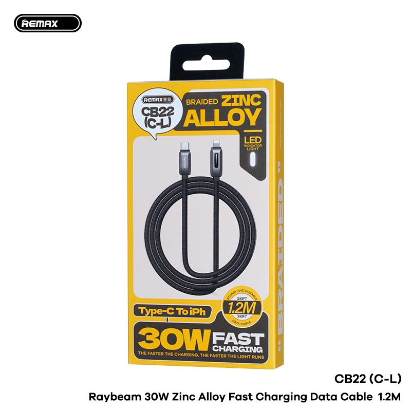 Cáp sạc nhanh 33w REMAX CB22 C-L cáp TypeC ra Iphone chất liệu hợp kim dài 1m2 có đèn led siêu đẹp