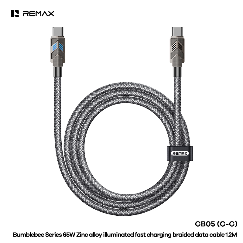 Cáp sạc nhanh 65w REMAX CB05 C-C cáp Type C ra Type C chất liệu hợp kim có đèn led siêu đẹp