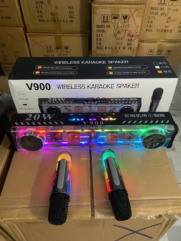 Loa bluetooth karaoke V900 công suất 20w mẫu dài để bàn có đèn led siêu đẹp kèm 1 micro không dây