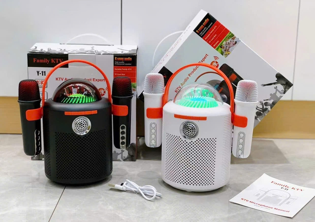 Loa bluetooth karaoke Y11 mẫu loa tròn có đèn led siêu đẹp kèm 2 micro siêu hay