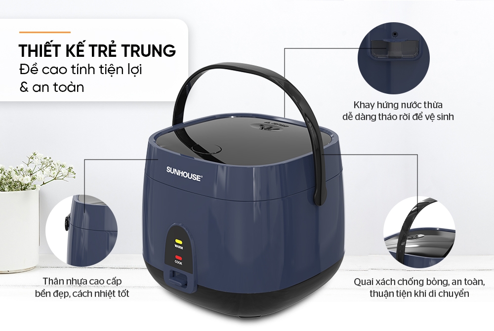 Nồi cơm điện 1.8lít SUNHOUSE 8611N mẫu mới trẻ trung