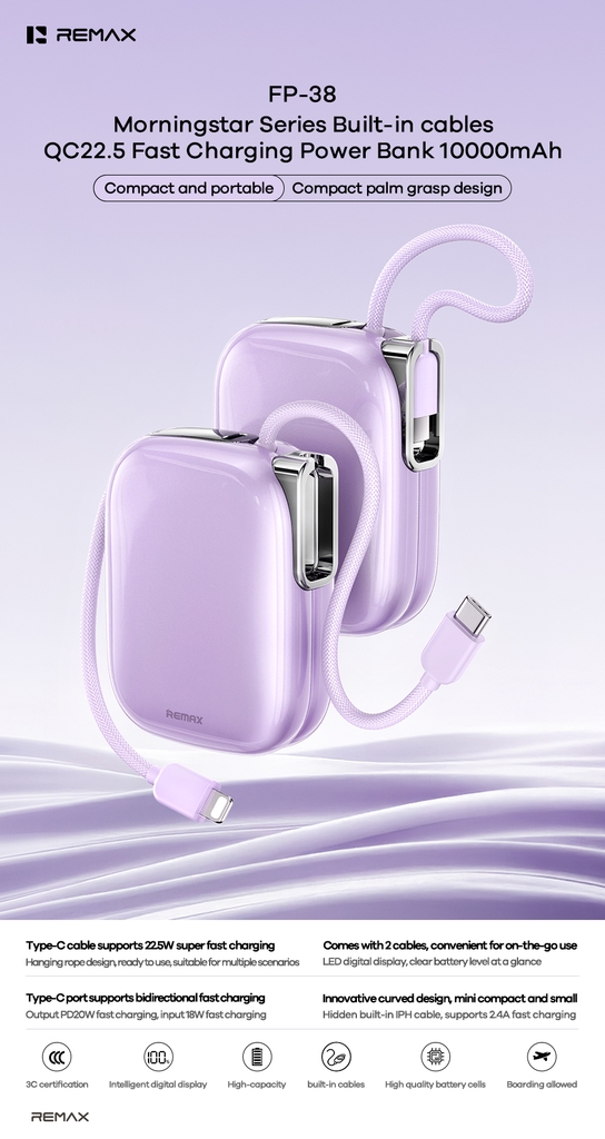 Pin sạc dự phòng REMAX FP-38 10.000mAh pin sạc siêu mỏng sạc nhanh 22.5w chính hãng