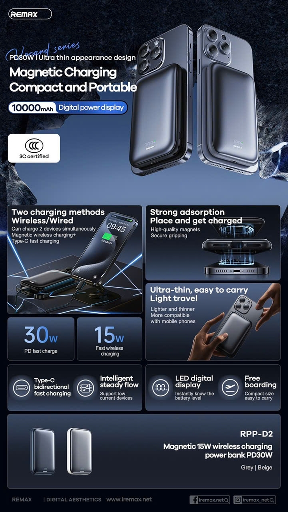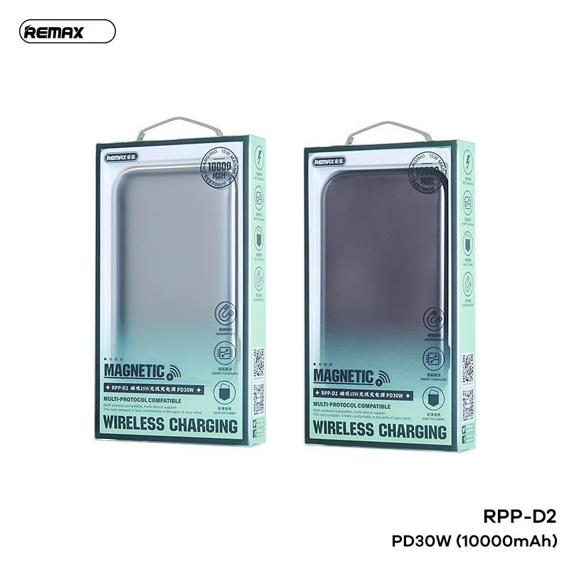 Pin sạc dự phòng REMAX RPP-D02 10.000mAh sạc nhanh 30w kèm sạc không dây từ tính siêu tiện lợi