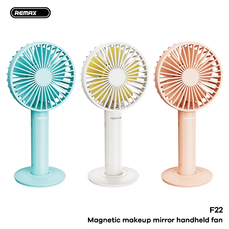 Quạt cầm tay REMAX F22 mẫu quạt cầm tay để bàn kiêm gương trang điểm mini kèm pin 1800mAh chính hãng