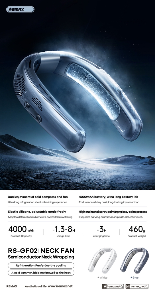 Quạt đeo cổ REMAX RS-GF02 quạt đeo cổ kiêm sò lạnh siêu mát kèm pin 4000mAh siêu trâu