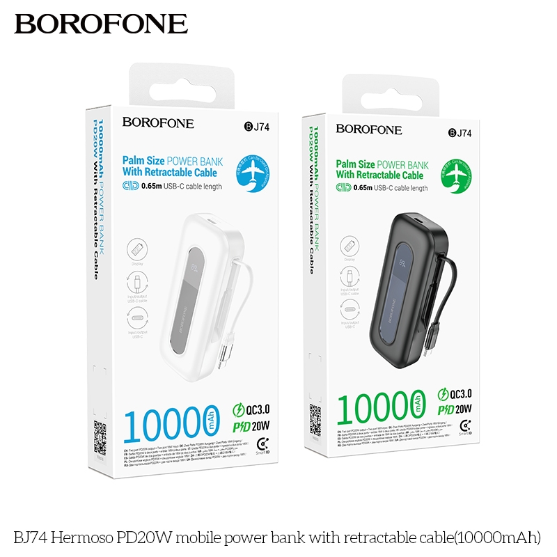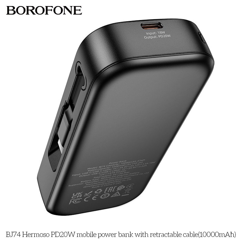 Pin sạc nhanh 20w Borofone BJ74 10.000mAh dự phòng kèm cáp sạc liền pin dây rút PD20W BH 1 năm