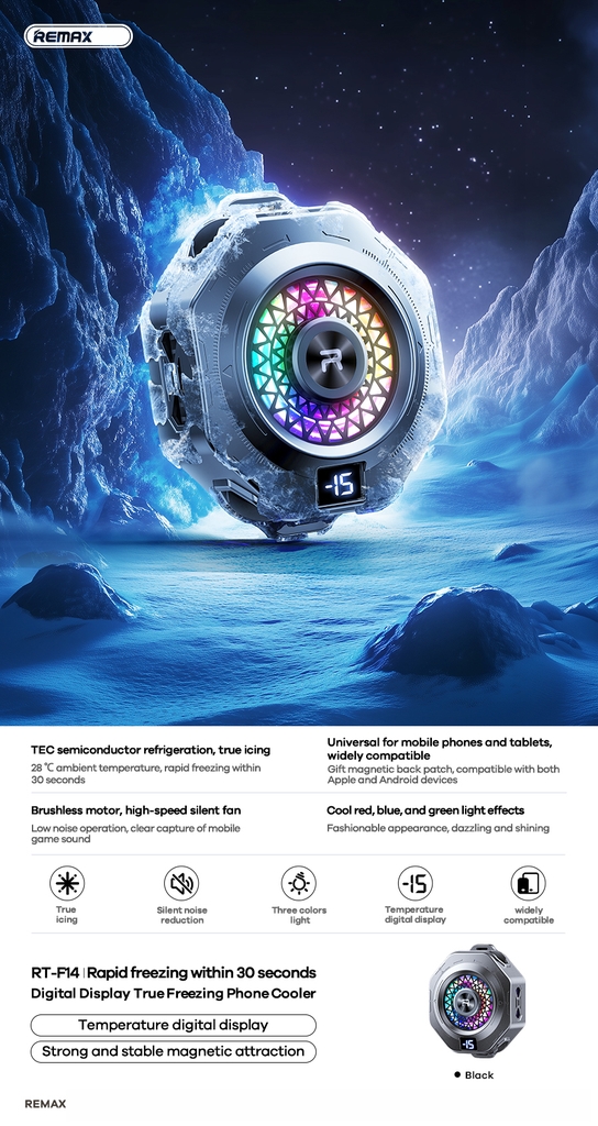 Sò lạnh REMAX RT-F14 quạt tản nhiệt cho điện thoại có LCD hiển thị nhiệt độ chính hãng