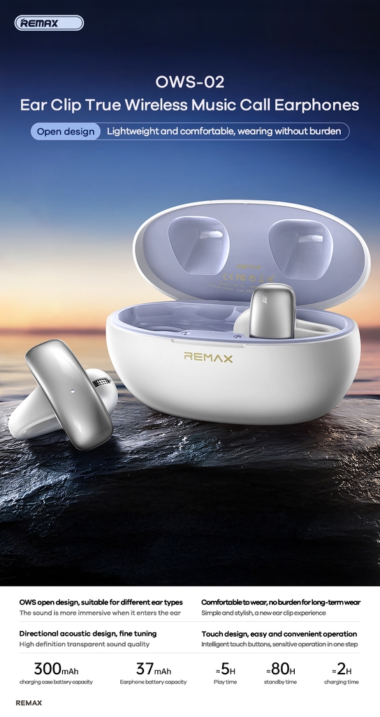 Tai nghe bluetooth REMAX OWS-02 kiểu móc tai siêu đẹp bluetooth v5.4 pin 37/300mAh chính hãng