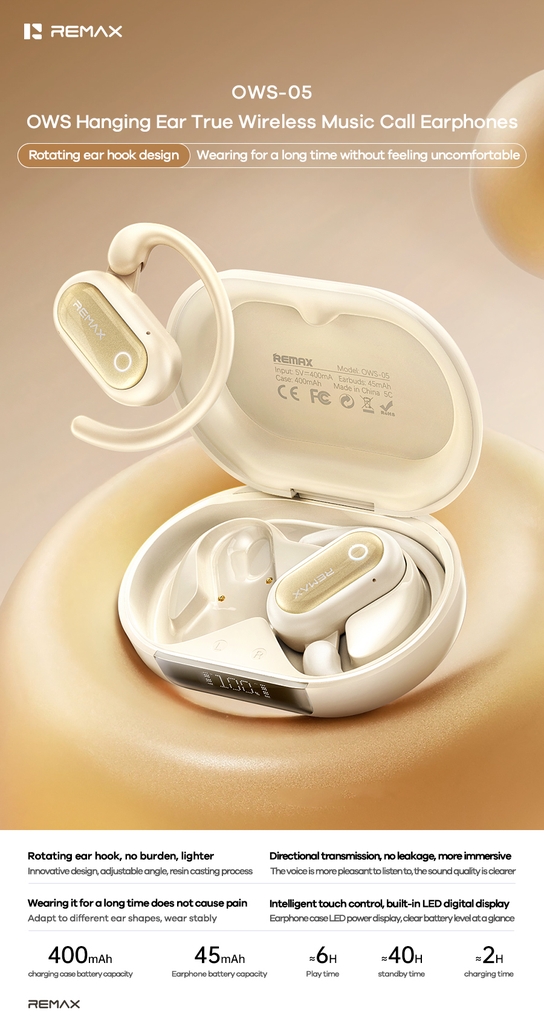 Tai nghe bluetooth REMAX OWS-05 kiểu móc tai bluetooth V6.0 pin 45/400mAh chính hãng